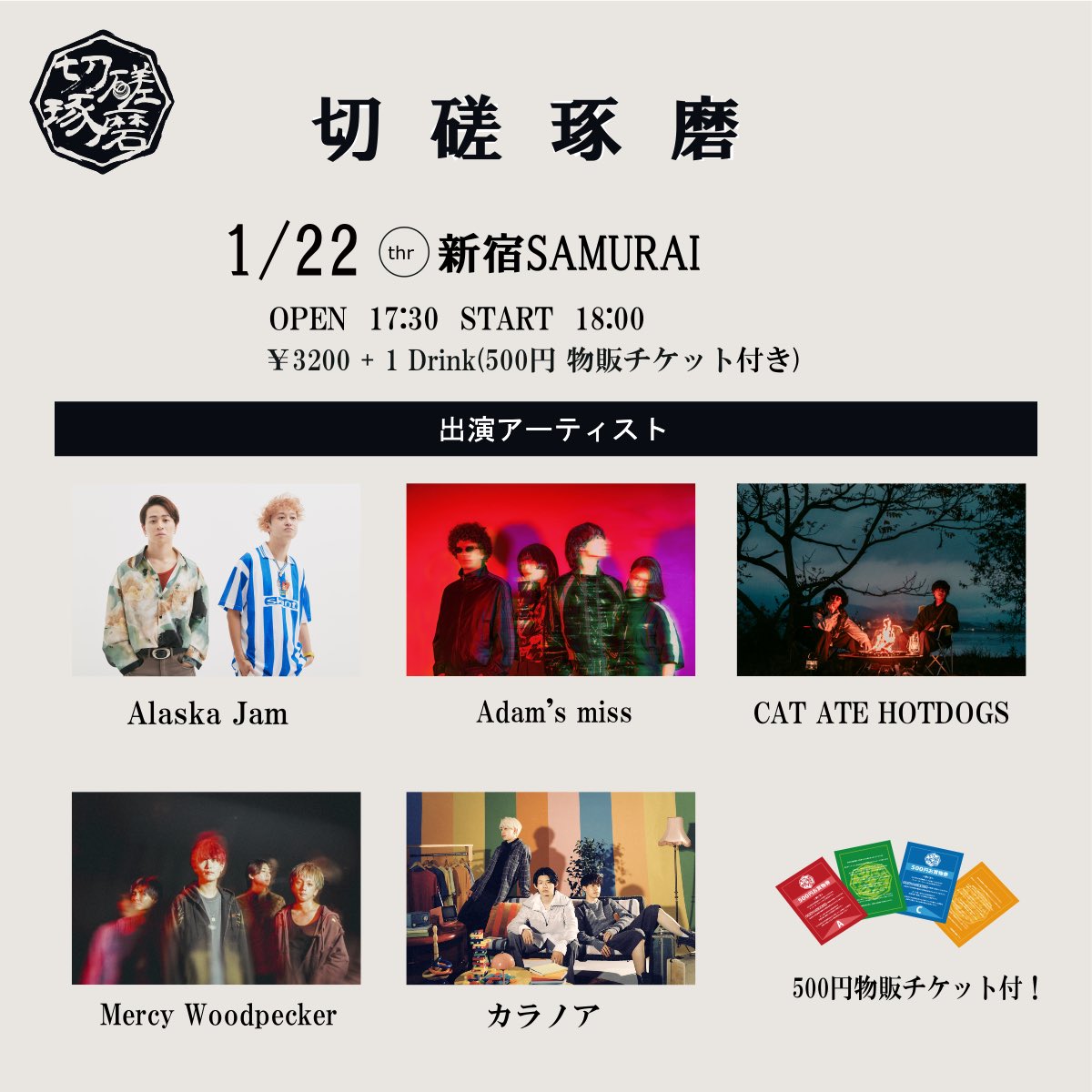 前売り¥3200+1dr(500円お買物カード付)