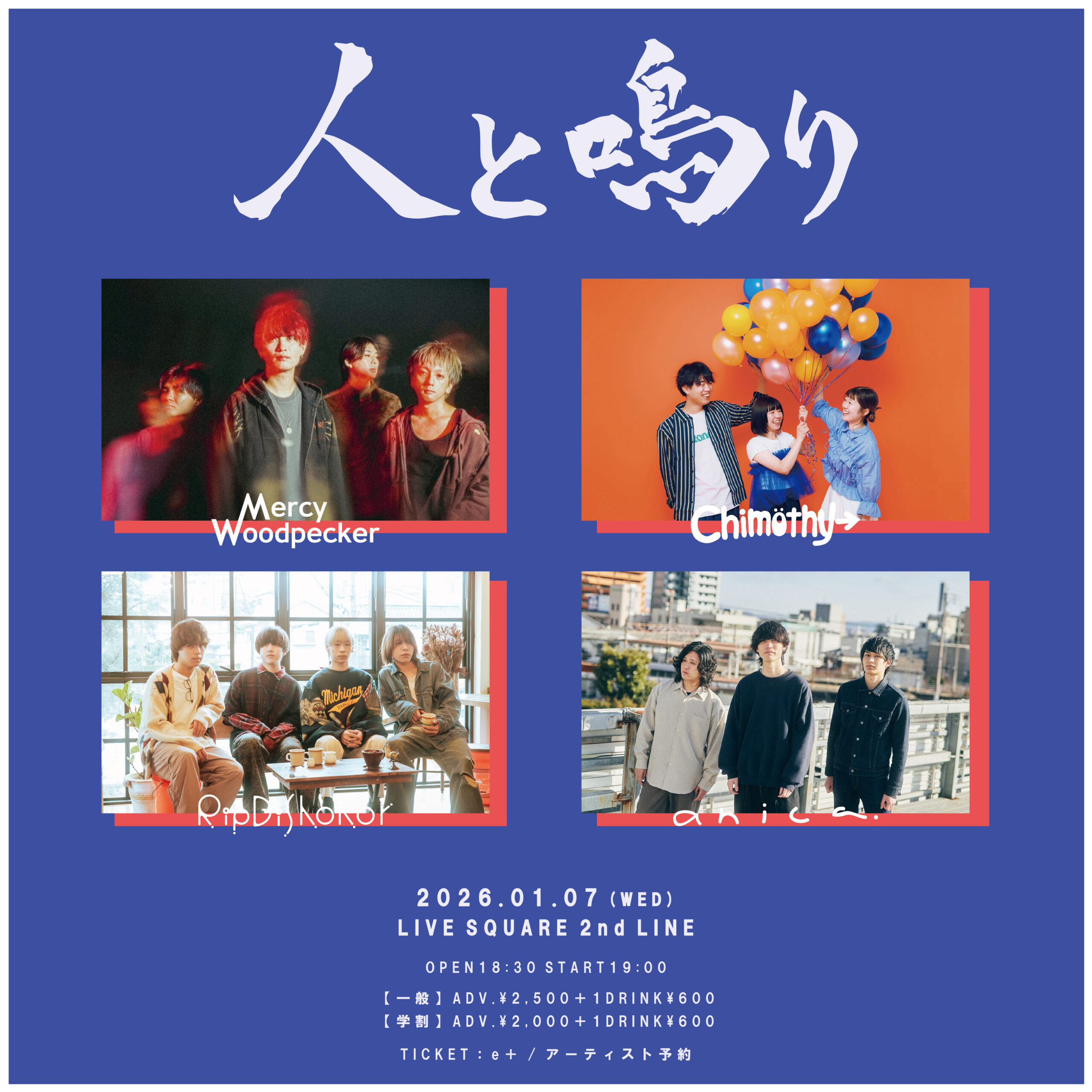 前売り¥2,000(学割) ¥2,500/当日¥3,000